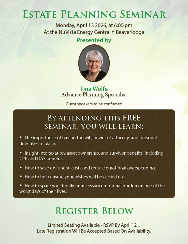 Beaverlodge Funeral Service is proud to be a part of our community. We aim to regularly offer services, like grief support groups and estate planning, as well as other activities. We strive to contribute to our community by sponsoring and participating in local events. We keep this page up-to-date and are always happy to answer any questions you may have.
